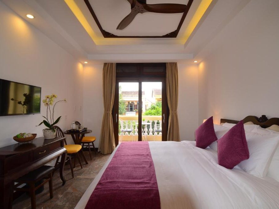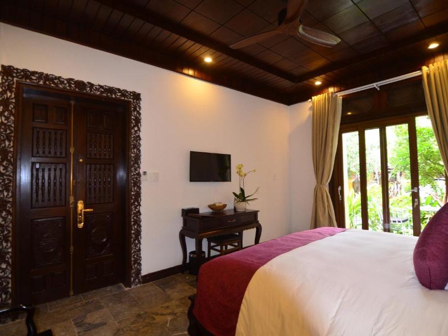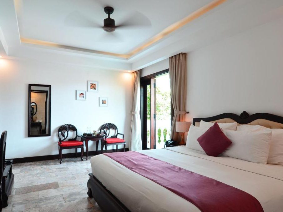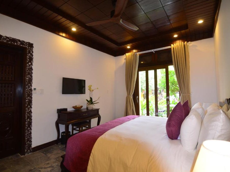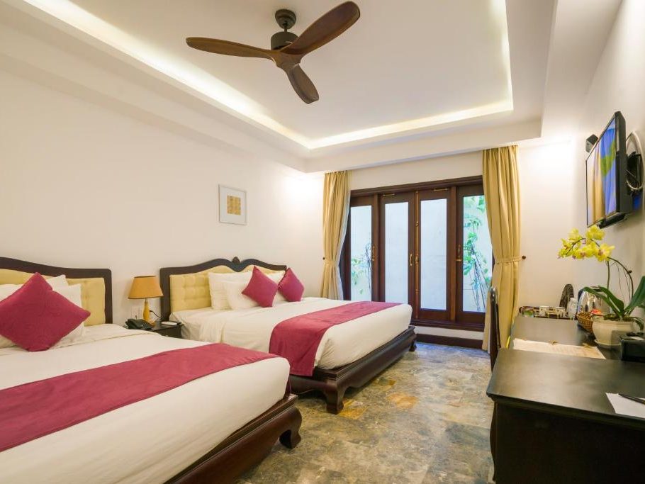 – Diện tích phòng: 32m2 – Sức chức: 2 người lớn + 1 trẻ em (dưới 10 tuổi) Tất cả các phòng đều được trang bị đầy đủ các thiết bị và tiện nghi sang trọng, hiện đại và mới nhất. Mỗi phòng Deluxe Double có một giường lớn và có cửa sổ nhìn ra view hồ bơi (tầng 1) hoặc nhìn ra khu dân cư (tầng 2). Phòng tắm vòi sen và có đầy đủ đồ vệ sinh cá nhân. |