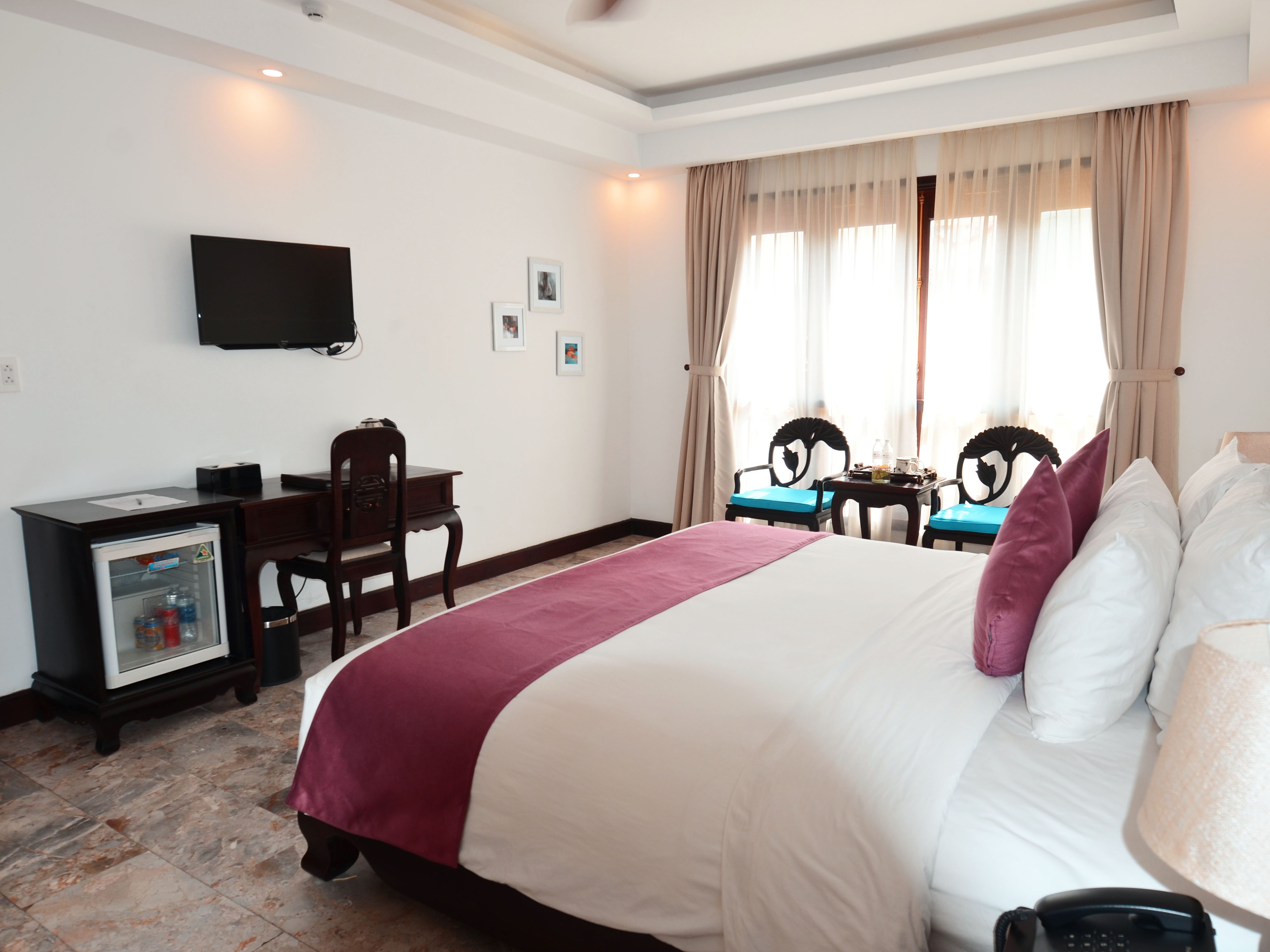 – Diện tích phòng: 32m2 – Sức chức: 2 người lớn + 1 trẻ em (dưới 10 tuổi) Tất cả các phòng đều được trang bị đầy đủ các thiết bị và tiện nghi sang trọng, hiện đại và mới nhất. Mỗi phòng Executive có một giường lớn và có ban công nhìn ra view hồ bơi. Phòng tắm có bồn tăm nằm (ở tầng 2) hoặc vòi sen (ở tầng 3) và có đầy đủ đồ vệ sinh cá nhân. |