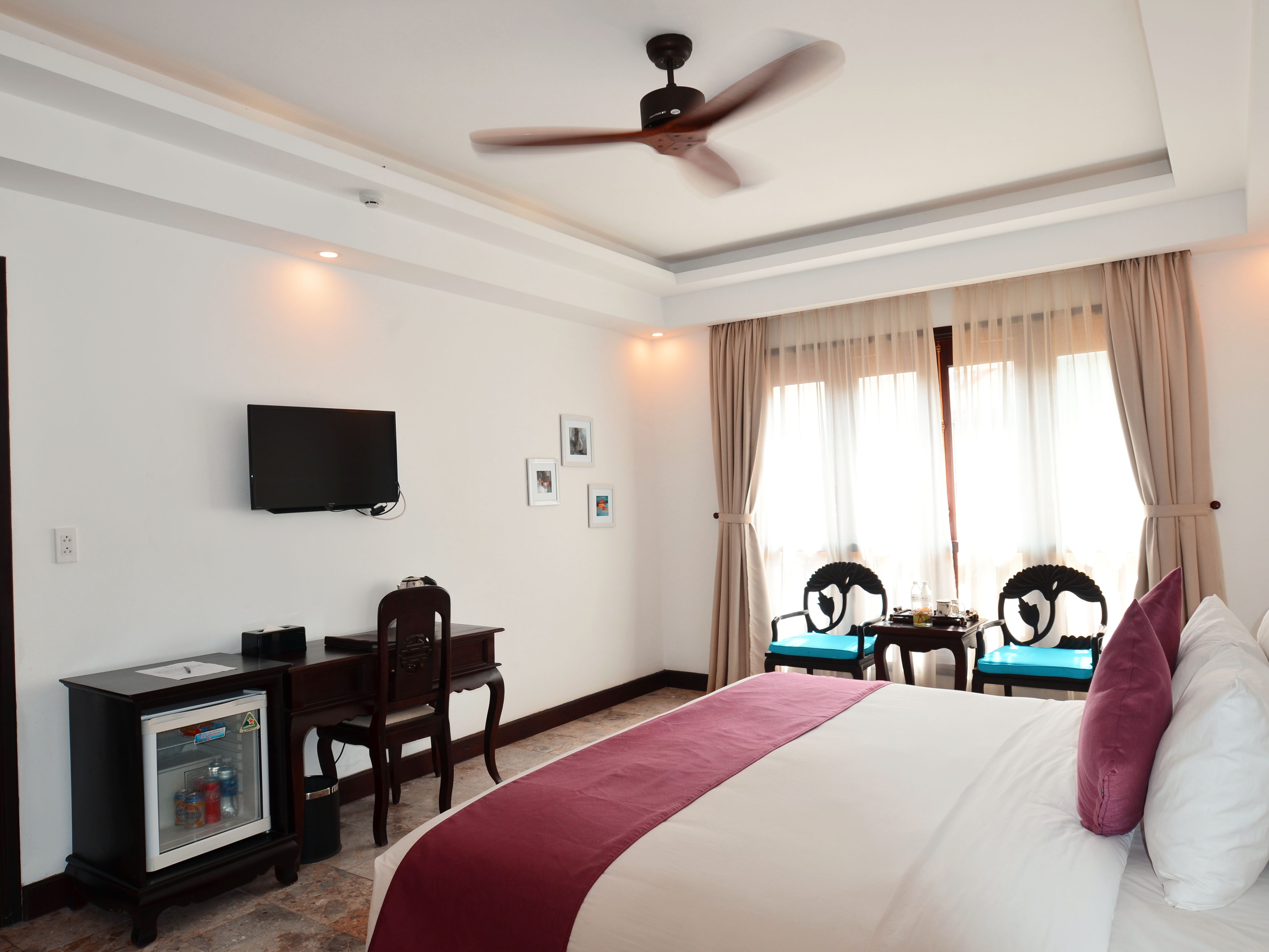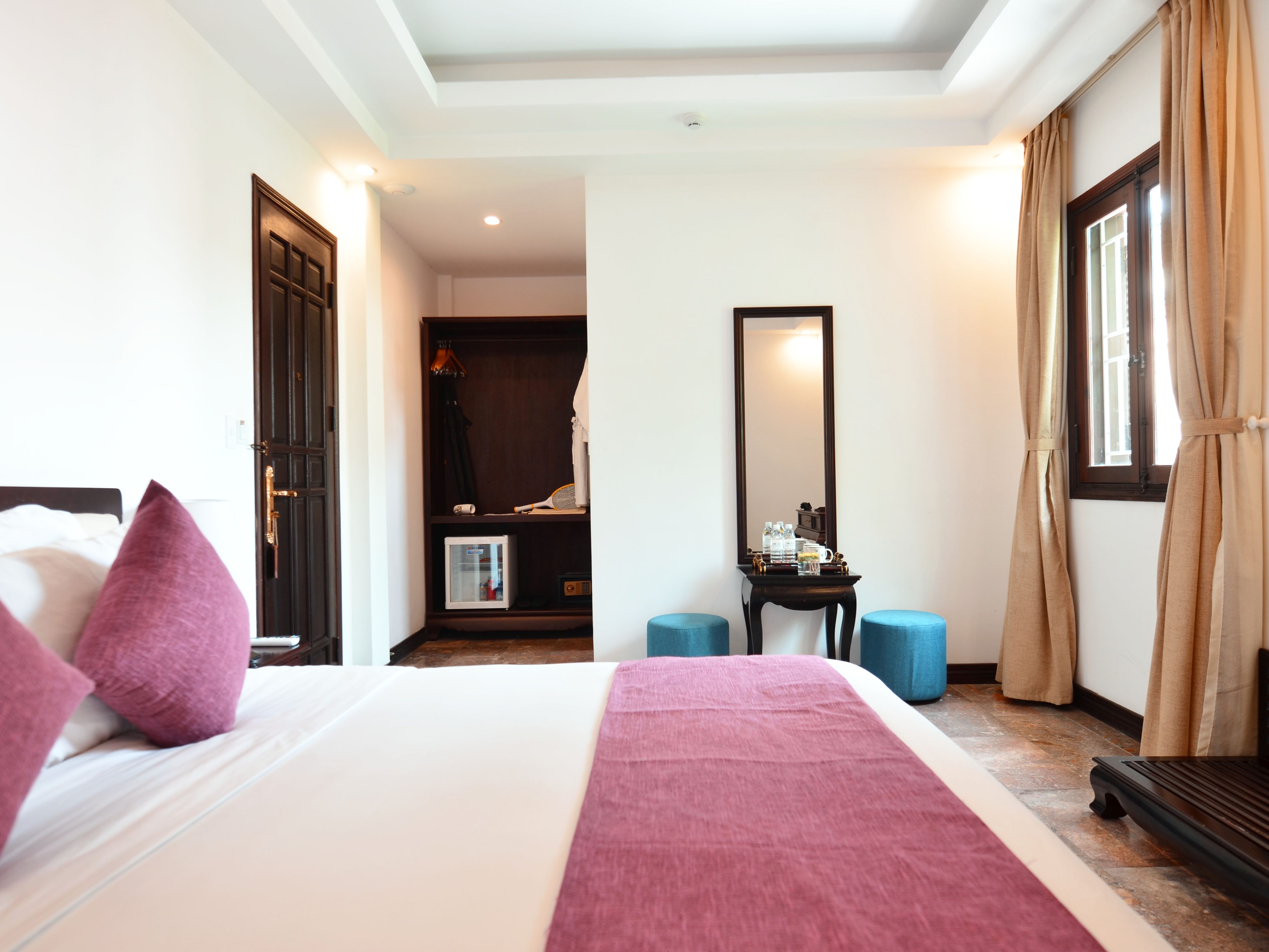 Tất cả các phòng đều được trang bị đầy đủ các thiết bị và tiện nghi sang trọng, hiện đại và mới nhất. Mỗi phòng Deluxe Double có một giường lớn và có cửa sổ nhìn ra view hồ bơi (tầng 1) hoặc nhìn ra khu dân cư (tầng 2). Phòng tắm vòi sen và có đầy đủ đồ vệ sinh cá nhân.
